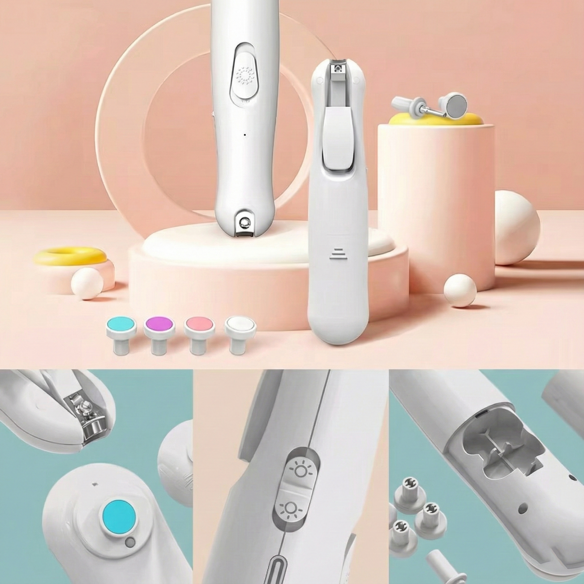 Different nail grinding and polishing heads for trimming, shaping, smoothing, and shining nails with precision.